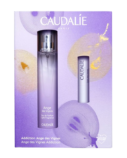 En este cofre encontrarás el Eau de Parfum Ange des Vignes (50 ml) y, de regalo, el Tratamiento para Labios Vinotherapist™ (4,5 g). Voluptuosa y chispeante a la vez, la fragancia chipre del perfume exhala notas afrutadas de uva y frambuesa, matices ligeros de neroli y un fondo envolvente de pachuli. Entre el cielo y las vides, una brisa celeste, cautivadora y sensual. El Tratamiento para Labios Vinotherapist™, enriquecido con aceite de pepitas de uva nutritivo, protege y calma los labios secos a largo plazo. Su textura se funde al instante sin dejar efecto graso, aportando hidratación duradera. Además, su delicado perfume de naranja dulce con un toque avainillado perfuma sutilmente los labios, que permanecen protegidos durante todo el día.
