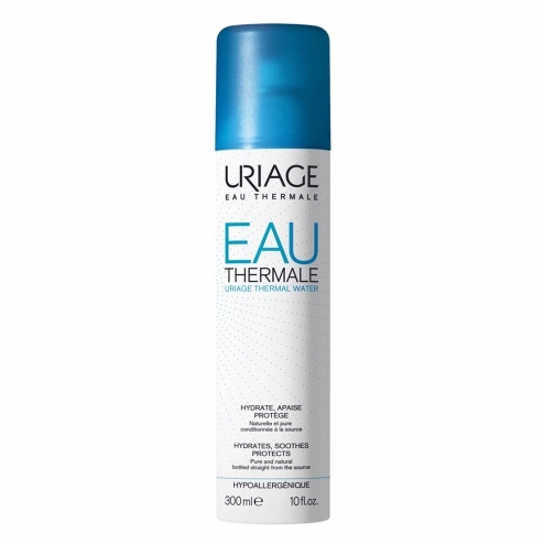 El Agua Termal de Uriage se envasa en la fuente, en atmósfera controlada, sin conservantes ni perfume, manteniendo así toda su riqueza natural y su pureza original. El Agua termal de Uriage es una fuente de cuidados que se utiliza a diario, verdadera cura de oligoelementos y sales minerales, fuente de resplandor para la piel. Es un agua de cuidado que hidrata y es la única agua termal que lo consigue gracias a su concentración en sales minerales similar a la de los NMF de la piel (Natural Moisturizing Factors). Este agua alivia rojeces, irritaciones, eritemas de las nalgas, pequeños tratamientos quirúrgicos, picor, eritema solar y problemas relacionados con el afeitado. Además, protege gracias a su poder antiradicalario y suaviza por sus propiedades filmógenas, dejando la piel suave y aterciopelada. También fija el maquillaje, ¡por la mañana y en cualquier momento del día!